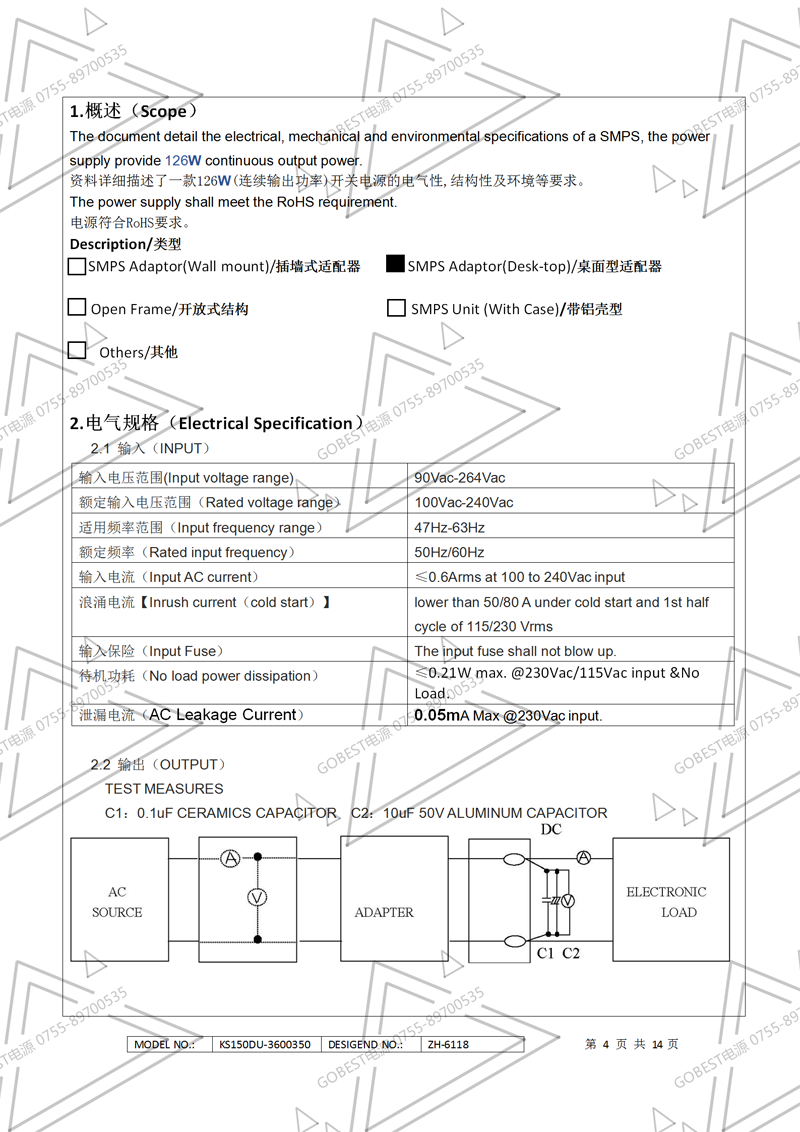 24V6A電源適配器帶PFC電路規格書(新模具)